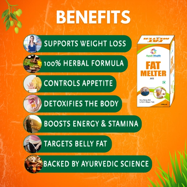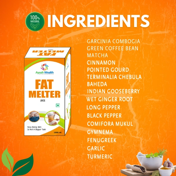 Why choose Fat Melter Juice? Because it’s more than just a product—it's a promise of holistic health. Made with carefully selected ingredients, this juice is designed to target those stubborn fat deposits while boosting your metabolism and enhancing digestion naturally. No chemicals, no shortcuts—just pure Ayurvedic goodness.